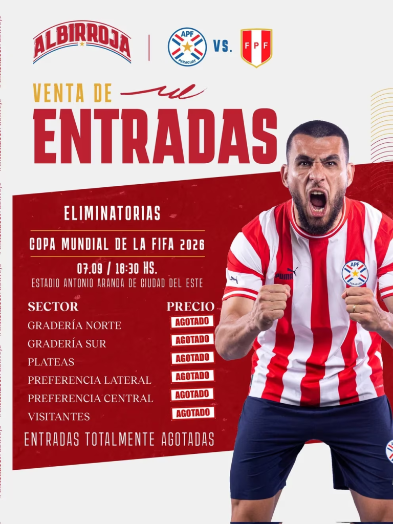 A pocos días de que se juegue el Paraguay vs. Perú, los aficionados paraguayos agotaron las entradas en cuestión de horas. Cabe precisar que el aforo del estadio Antonio Aranda Encina es de 28 mil espectadores, muy por debajo de los 42 mil que caben en el Defensores del Chaco.