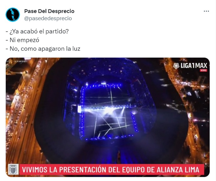 El episodio más recordado para Alianza Lima fue el apagón que se produjo luego de la final con Universitario en Matute. Por ello, cuando las luces se apagron para hacer la presentación de jugadores, los cibernautas no tuvieron compasión y vacilaron a los ‘grones’.