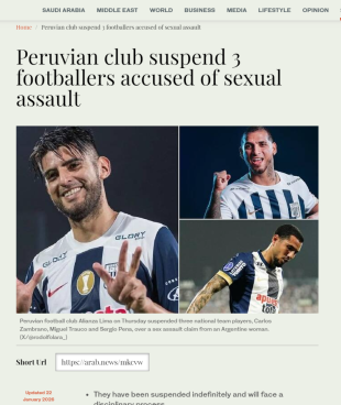 Arab News (club peruano suspende a tres futbolistas acusados de abuso sexual)