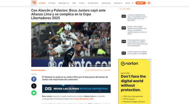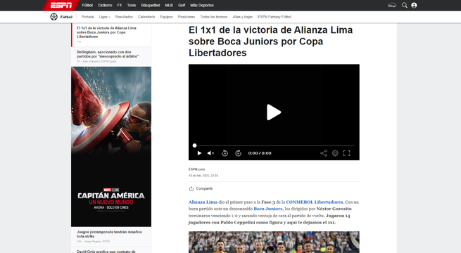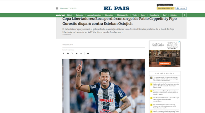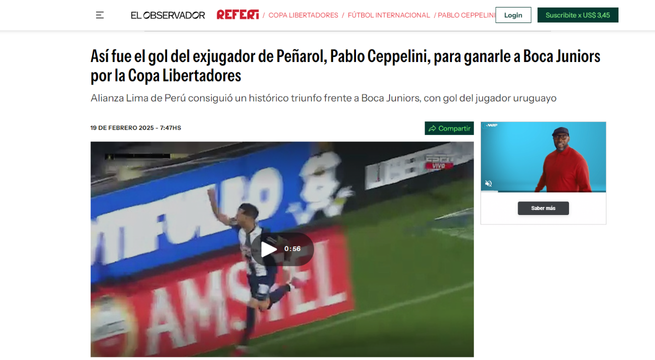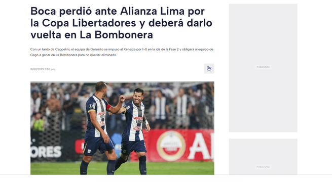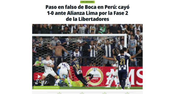 Luego del partido en Matute, la prensa internacional informó sobre el triunfo de Alianza Lima y señaló que el equipo ‘Xeneize’ tendrá un panorama complicado en el partido de vuelta, que se jugará el próximo martes 25 de febrero.