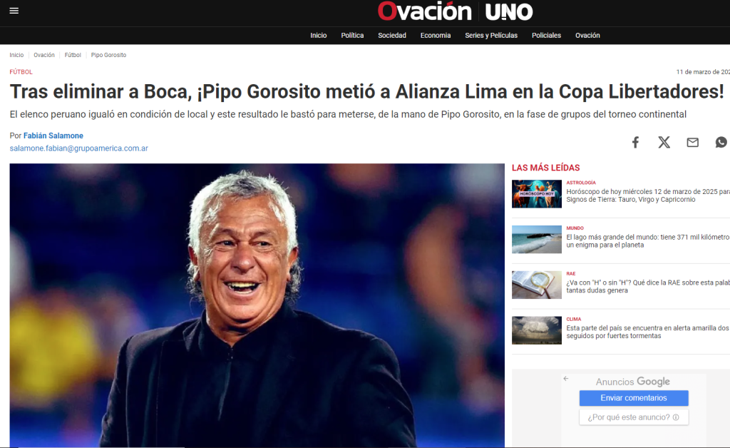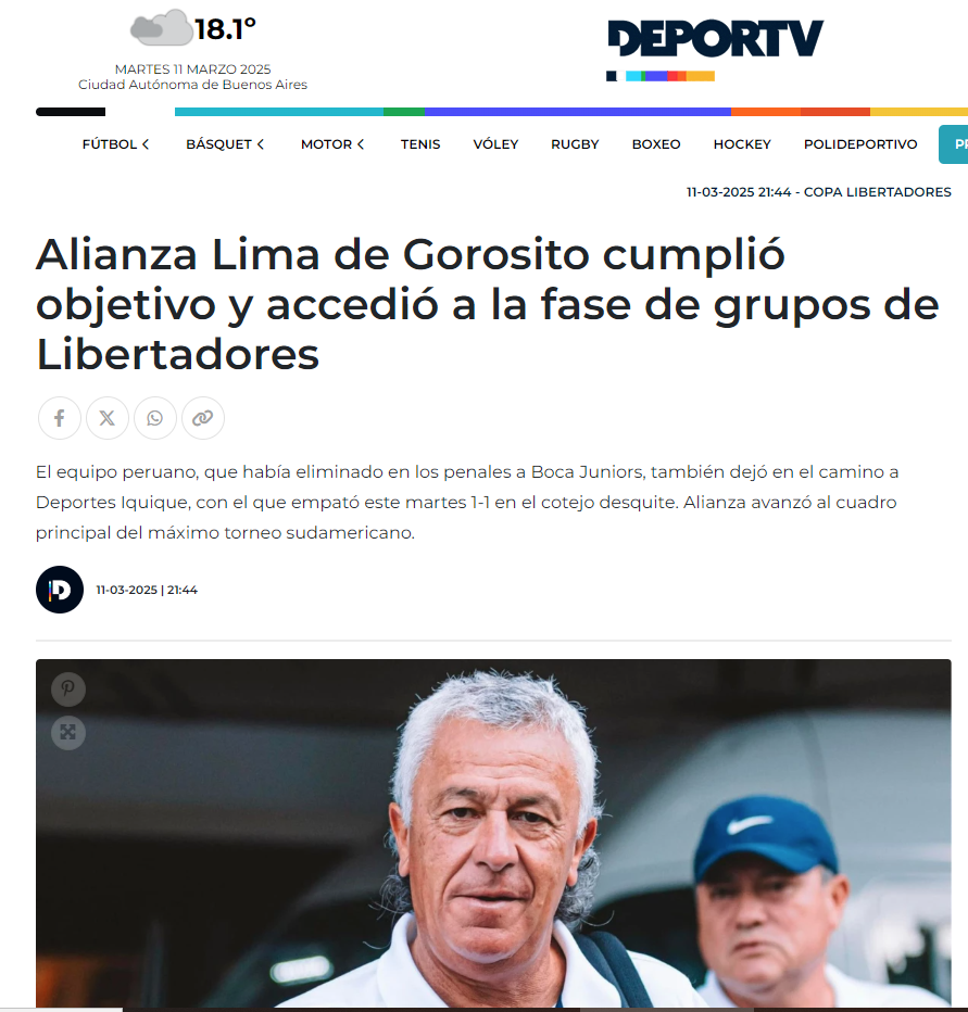 LA REACCIÓN DE LOS MEDIOS ARGENTINOS TRAS EL EMPATE 1-1 ENTRE ALIANZA LIMA Y DEPORTES IQUIQUE