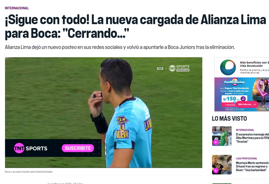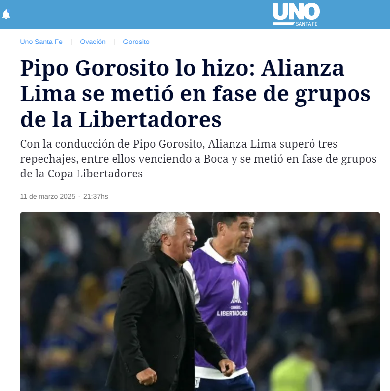 Y es que los principales medios de comunicación de Argentina, no olvidan que Alianza Lima eliminó en la fase 2 al archi favorito Boca Juniors, por lo que no dudaron en darle espacio al gran resultado de los íntimos sobre Deportes Iquique.