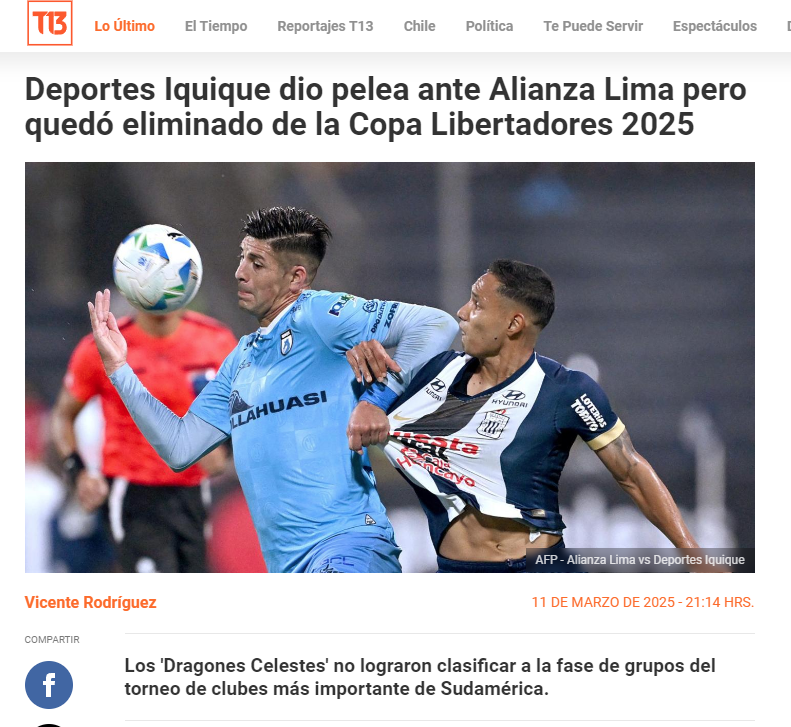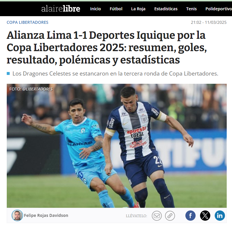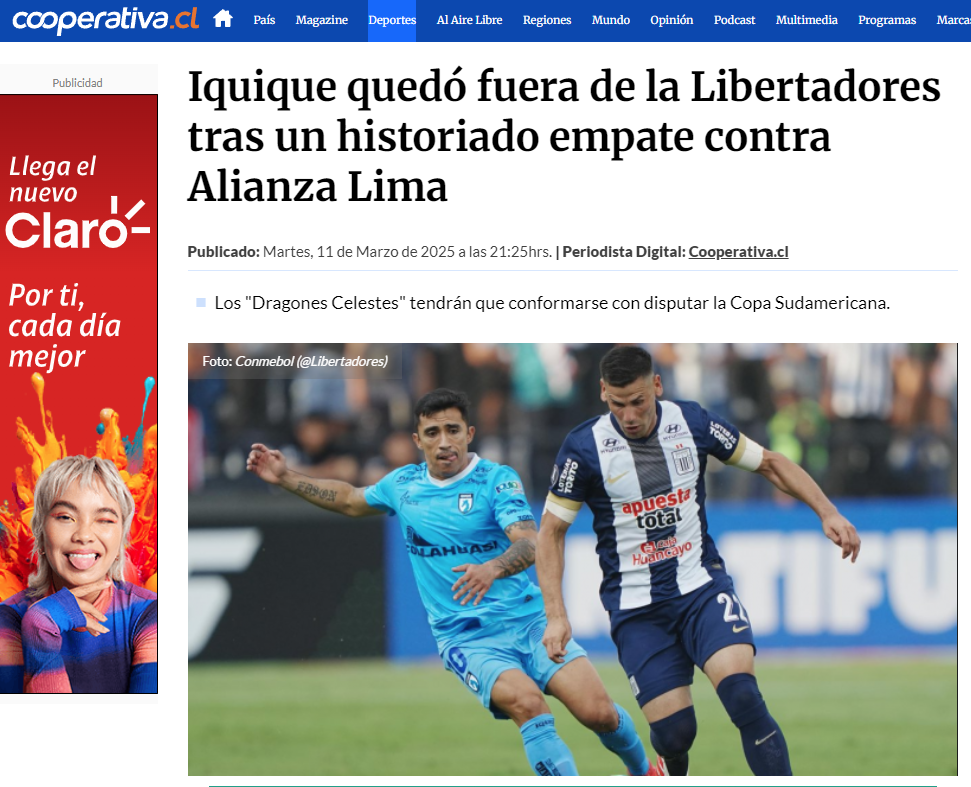 LA REACCIÓN DE LOS MEDIOS CHILENOS TRAS EL EMPATE 1-1 ENTRE ALIANZA LIMA Y DEPORTES IQUIQUE