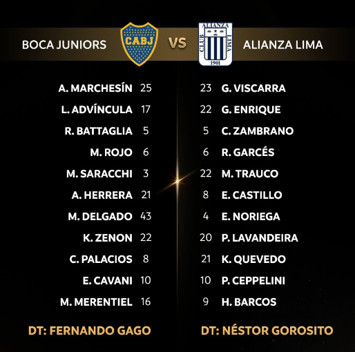 ALINEACIONES DE ALIANZA LIMA Y BOCA JUNIORS PARA EL PARTIDO POR COPA LIBERTADORES