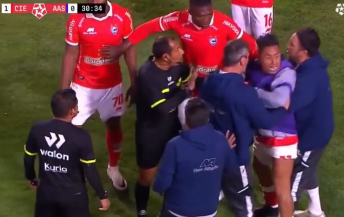 El director técnico de Cienciano, Cristian Díaz, fue expulsado tras encarar al juez de línea, generando una situación tensa en el campo. La decisión del árbitro principal, Micke Palomino, de mostrarle la cartulina roja a Díaz fue contundente, e incluso requirió de la intervención de un miembro de su cuerpo técnico para calmar al entrenador argentino, quien se mostró descontrolado por la decisión.