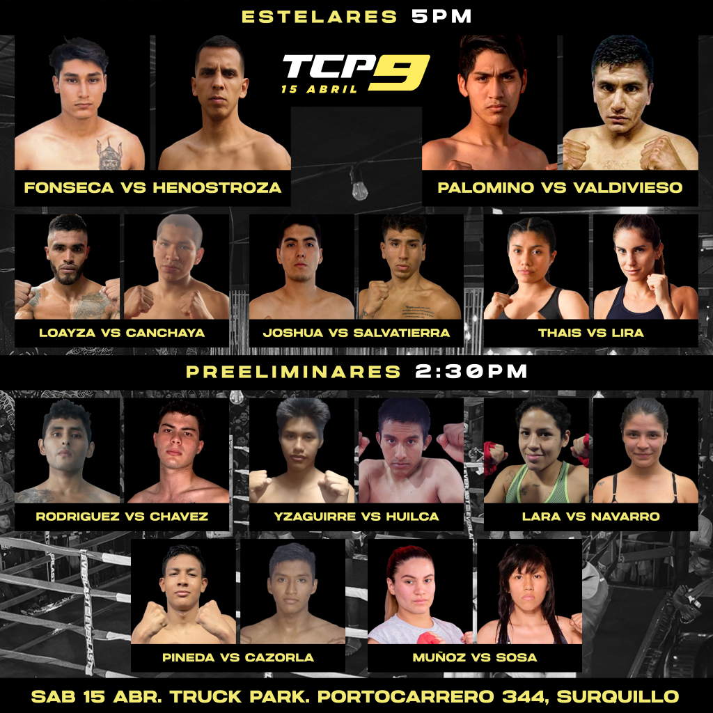 Una de las peleas más prometedoras será la del experimentado Mauricio Henostroza vs la joven promesa, Piero Fonseca en los 60 kg. Las mujeres también estarán representando lo mejor de este arte marcial con tres peleas en las modalidades profesional, amateur y semi profesional.