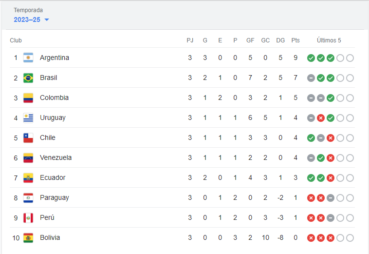 TABLA DE POSICIONES EN VIVO DE LAS ELIMINATORIAS 2026
