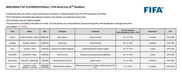 A través de su página oficial, la FIFA hizo oficial la sanción de un partido a Leonardo Martins, miembro del comando técnico del seleccionador Jorge Fossati, a días del gran enfrentamiento entre Perú y Uruguay.