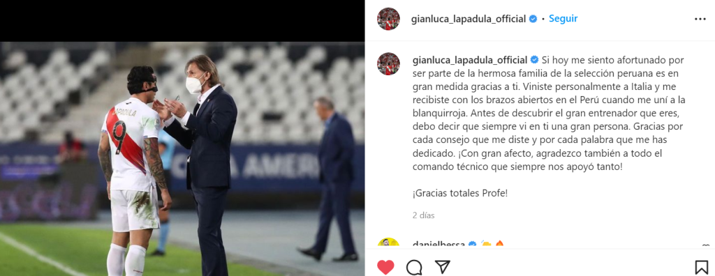 El ‘Bambino’ recordó que Gareca fue hasta Italia para dialogar con él previo a su convocatoria. “Antes de descubrir el gran entrenador que eres, debo decir que siempre vi en ti una gran persona”, escribió el delantero del Benevento en su cuenta de Instagram.