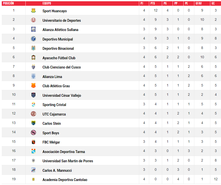 Liga 1: así quedó la tabla de posiciones luego de la fecha 4