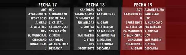 De acuerdo a la nueva distribución de partidos, en la fecha 1 el campeón peruano Alianza Lima recibirá en Matute al Atlético Grau. En tanto, Universitario será visita ante Cantolao, mientras que Sporting Cristal visitará al Sport Huancayo.