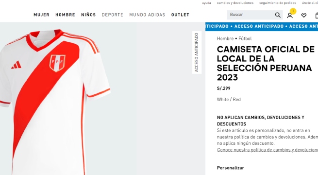 El precio oficial de 299 soles por cualquiera de las dos versiones, al momento de realizar la compra se puede personalizar con el dorsal de los jugadores o alguno de su preferencia.