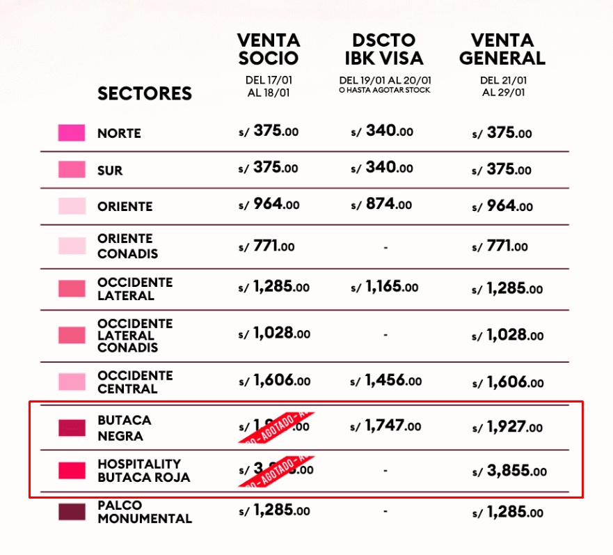 Si bien los precios de las entradas van desde los 300 a 3800 soles, los hinchas lograron agotar los boletos más caros. Así como lee, algunos hinchas desembolsaron más de 3 mil soles de sus cuentas de ahorro para pagar el ‘Meet and Greet’.