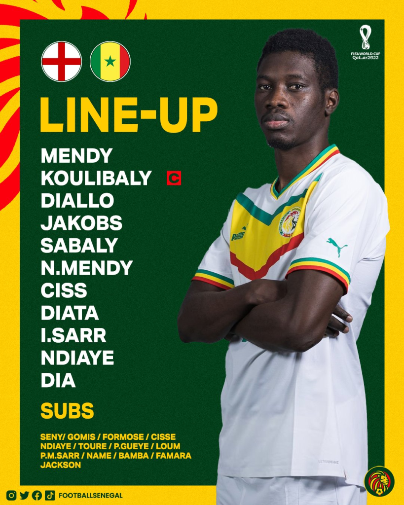 Por otro lado, Senegal no ha tenido un paso arrasador por la fase de grupos, ya que perdió en su debut ante Países Bajos por 2 a 0, supo recomponerse venciendo a Qatar y Ecuador consecutivamente. Si bien en cuanto a individualidades no se iguala al cuadro de los ‘Three Lions’, Senegal cuenta con jugadores de clase mundial como lo son Kalidou Koulibaly, Edouard Mendy y Ismailia Sarr.