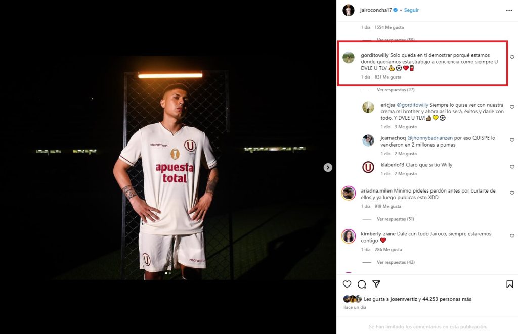 Si bien los hinchas de Alianza Lima criticaron el cambio de equipo de Jairo Concha, nadie esperó el comentario de su padre, Willy Concha, quien dejó un curioso comentario en la foto de Instagram que subió el futbolista en sus redes sociales.