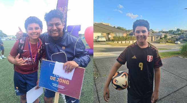 Joven talento peruano visita la embajada de Perú en Nueva Zelanda tras invitación del Barcelona