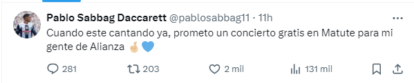 Y es que como se sabe, Pablo Sabbag también se desempeña como cantante y ahora ha dejado una promesa para todos los hinchas ‘blanquiazules’ que siguen y seguirán su carrera.
