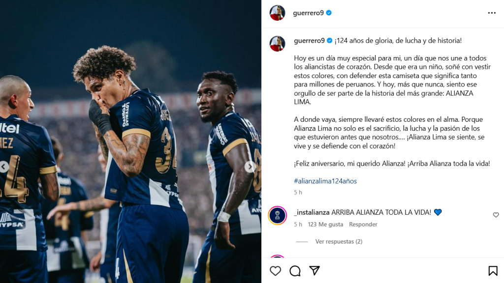 Este sábado 15 de febrero, Alianza Lima cumple 124 años de historia y tradición, y como era de esperarse, las sociales se llenaron de mensajes de orgullo y amor por los colores blanquiazules y uno que no pasó desapercibido es el de Paolo Guerrero.