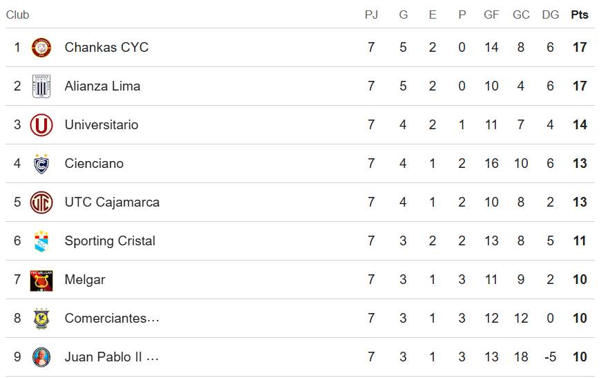 Mira la tabla de posiciones de la Liga 1 2026 | Al final de la fecha 7 del Torneo Apertura, muchos clubes están en la lucha por sumar la mayor cantidad de puntos que les permitan obtener el título nacional, acceder a algún campeonato internacional o salvarse de la baja.