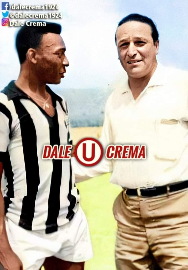 Ante ello, tal y como lo mencionamos anteriormente, recordamos una de las postales más históricas de la historia de nuestro balommpíe peruano con estas 2 leyendas acompañadas. Dicha foto fue tomada en la década de los 60, según diferentes reportes. En esa época, Universitario derrotó 3-2 a Santos de Brasil en un amistoso internacional desarrollado en el Estadio Nacional. Los goles ‘cremas’ fueron anotados por Ángel Uribe (2) y Daniel Ruiz.