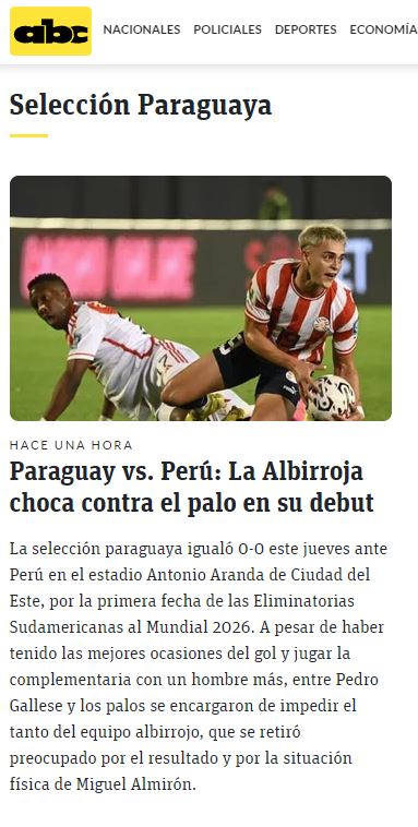 “Paraguay se ‘estrelló’ contra el palo en su estreno en las Eliminatorias”.