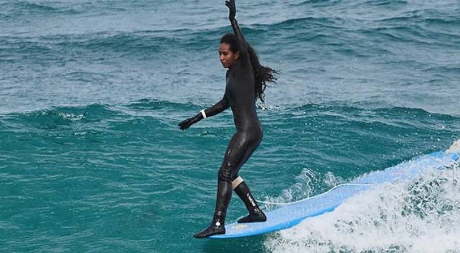 Maria Fernanda Reyes logró imponerse a las demás contendientes en la prueba de longboard femenino en los Juegos Panamericanos de Santiago 2023 y se quedó con el primer lugar.