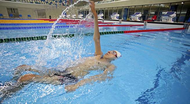 Los Para nadadores, ganadores de la medalla de bronce en Lima 2019, reconocieron este moderno recinto deportivo, zambulléndose en la piscina de competencias que tiene 50 metros de largo por 25 metros de ancho y cuenta con 10 carriles.