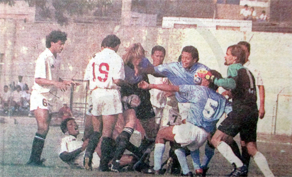 Comenzamos con la ‘mecha’ que prendió una rivalidad que ha ido creciendo con los años. En 1991, Sporting Cristal visitó a Universitario de Deportes en el mítico estadio ‘Lolo Fernández‘. Aquel encuentro lo ganaron los celestes por 1 a 2, con dos goles del jugador del partido, Horacio ‘Pepa’ Baldessari. Ernesto ‘Pinocho’ Vargas descontó para los locales.