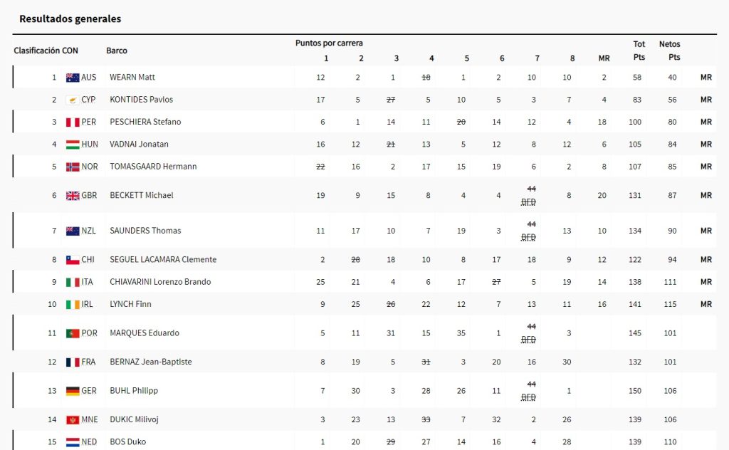 Y es que el representante demostró el gran nivel en el que está al ubicarse durante todas las regatas en el top 10, junto a otros deportistas como Matt Wearn de Australia, Michael Beckett de Gran Bretaña y el chileno Clemente Seguel.