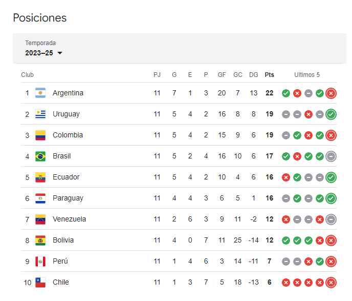 En esta nota de Latina Noticias, conoce cómo se quedó la tabla de posiciones de las Eliminatorias 2026 y también cual fue la programación completa de la fecha 11.
