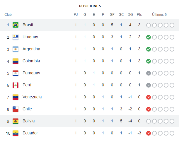 Así quedó la tabla de posiciones de las Eliminatorias 2026 tras la fecha 1