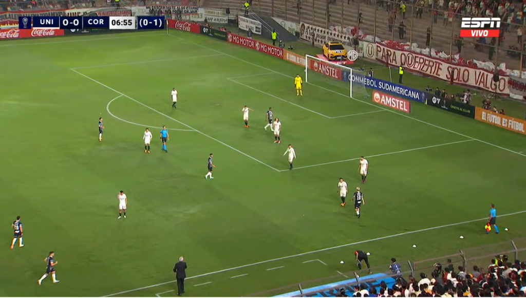 - 5′ – El conjunto crema empieza a presionar la banda derecha de Corinthians