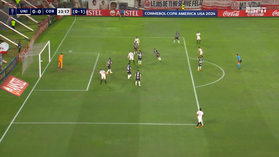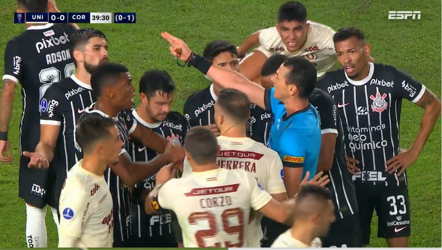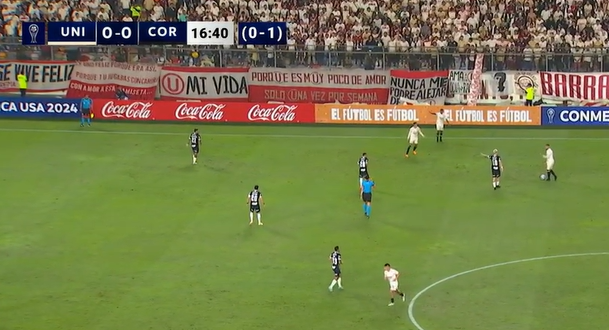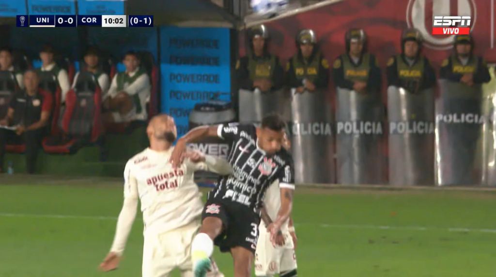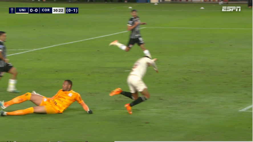 - 32′ – Corinthians intentó proyectarse por la banda izquierda pero Aldo Corzo impidió el ataque.