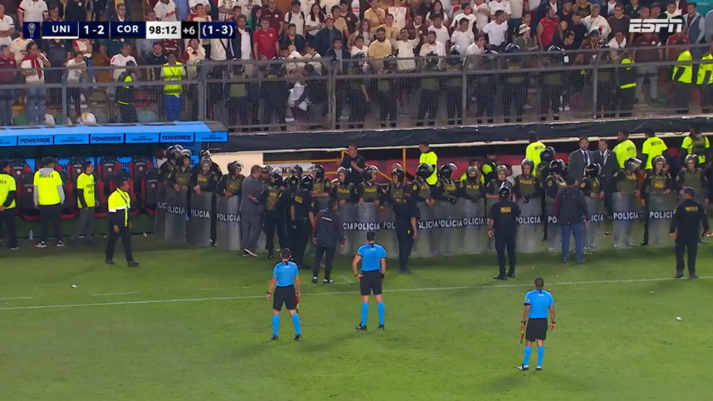 - 90+7′ – Jugadores de Corinthians se encuentran custodiados en la banca de suplentes.