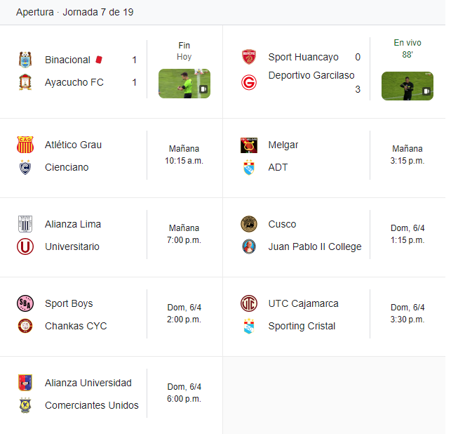 Así se juega la fecha 7 del Torneo Apertura de la Liga 1 2025, en el que Alianza Lima recibirá en Matute a Universitario de Deportes, mientras que Sporting Cristal visitará en Cajamarca al colero UTC.
