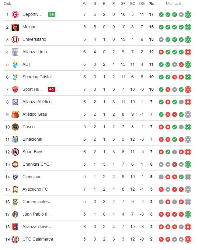 Mira la tabla de posiciones de la Liga 1 2025 | En el inicio de la fecha 7 del Torneo Apertura, varios equipos luchan por el primer lugar del campeonato y otros por conseguir sus primeros puntos. En esta nota de Latina Noticias, conoce el fixture completo, con los partidos y horarios, así como los diversos resultados y la tabla debidamente actualizada.