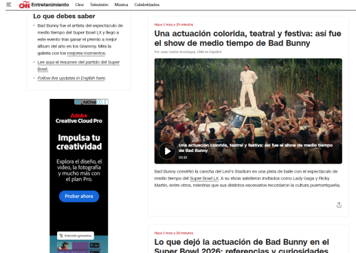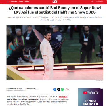 Un espectáculo sin precedentes. El show de Bad Bunny durante el medio tiempo del Super Bowl 2026, celebrado el domingo 8 de febrero, pasó a la historia. El cantante puertorriqueño sorprendió con la participación de Lady Gaga y Ricky Martin, y puso a medio mundo a bailar. Diversos medios internacionales informaron sobre el tan esperado evento.