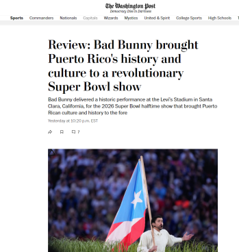 The Washington Post (Bad Bunny trajo la historia y cultura de Puerto Rico a un revolucionario show del Super Bowl)