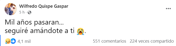 “Mil años pasarán… Seguiré amándote a ti”, escribió generando miles de reacciones y cientos de comentarios de fanáticos que le expresaron su más sentido pésame.