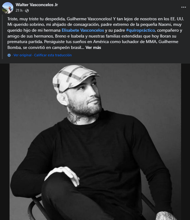 El luchador brasileño Guilherme Vasconcelos, conocido popularmente como ‘Bomba’ y excombatiente de la UFC, Bellator MMA y The Ultimate Fighter Brasil, fue encontrado muerto en su casa, en Los Ángeles, en Estados Unidos.