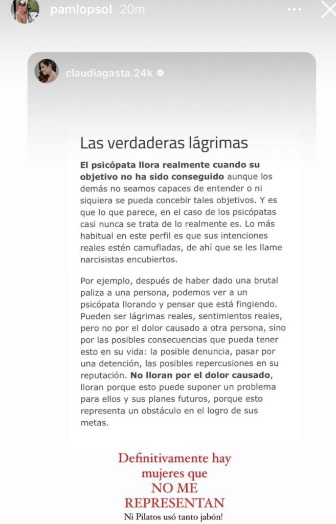 Pamela López compartió la publicación de la cuenta de Instagram @claudiagasta.24k, ahí decía lo siguiente: