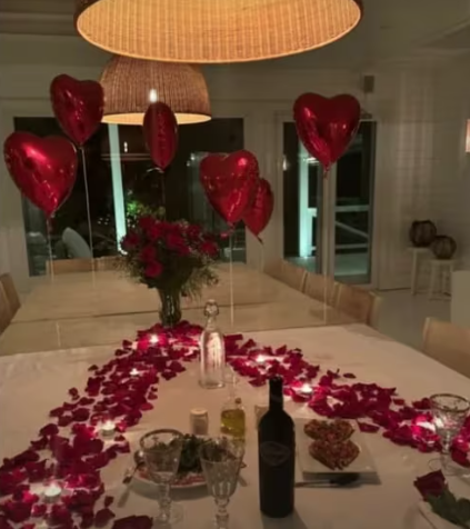 El argentino decidió adornar el comedor de la casa con globos rojos en forma de corazón, agregó pétalos de rosas y velas que le daban el toque romántico a la velada nocturna.