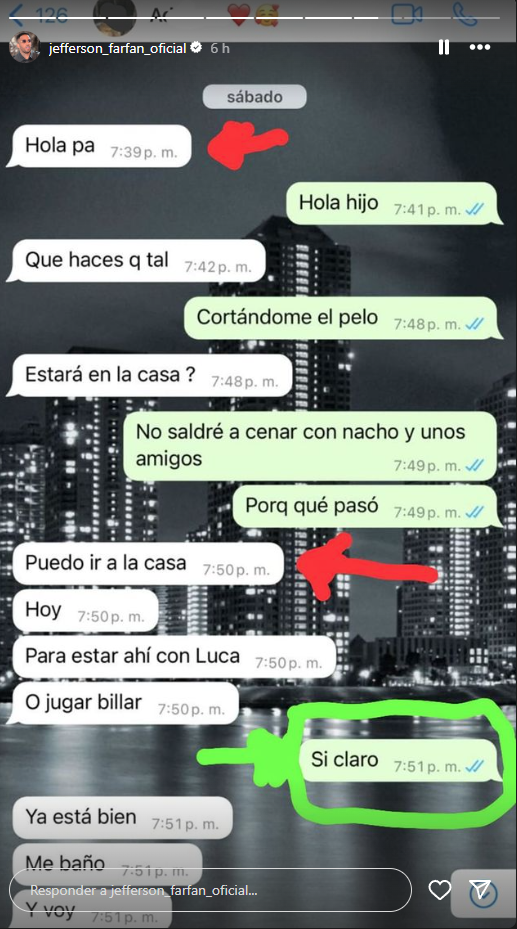 Para demostrar su versión, el amigo de Paolo Guerrero compartir pantallazos de la conversación que mantuvo con su hijo, donde se observa claramente que coordinaron antes de su visita.