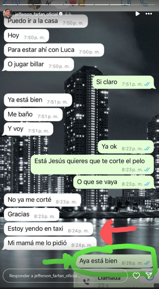 En sus stories de Instagram, el exjugador de Alianza Lima emitió un extenso mensaje en el que aseguró que las acusaciones de su expareja son falsas. Y aseguró que su hijo no llegó a su vivienda de sorpresa, sino que le escribió antes a consultarle si podía ir a su casa.
