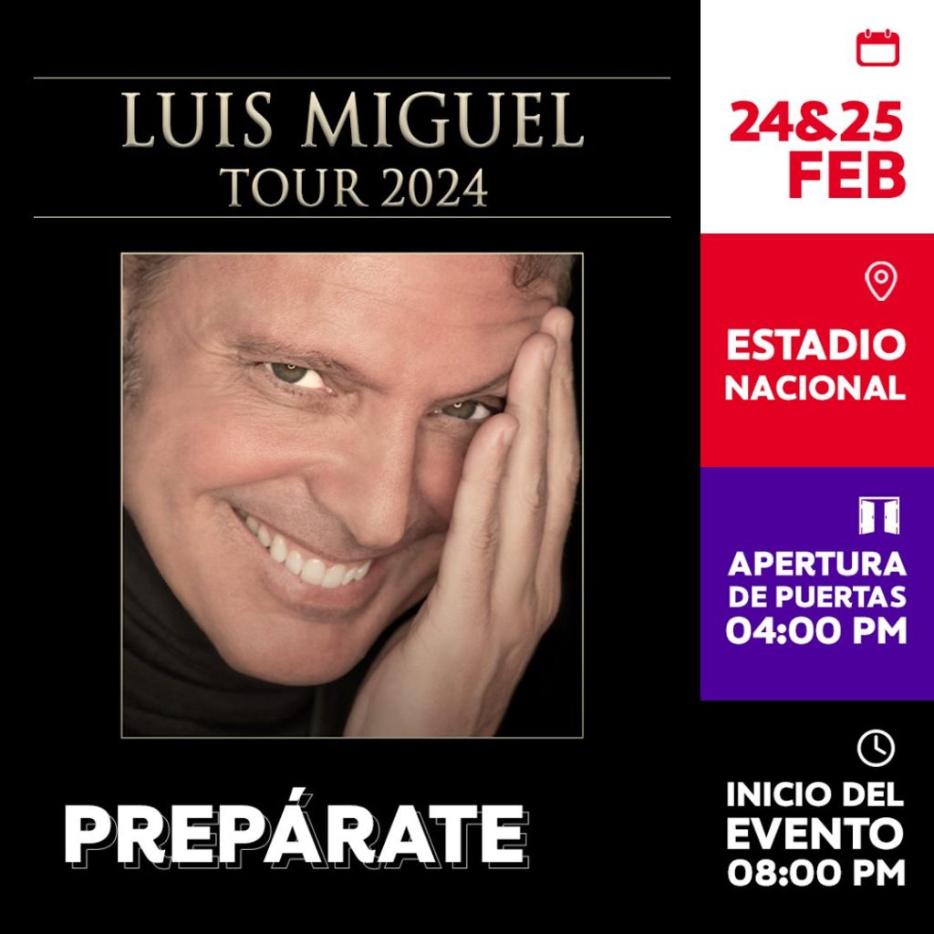 Las puertas del Estadio Nacional se abrirán desde las 4:00 de la tarde, pero Luis Miguel se presentará en el imponente escenario pasadas las 8:00 de la noche. Este horario se repetirá para ambas fechas: el 24 y 25 de febrero.