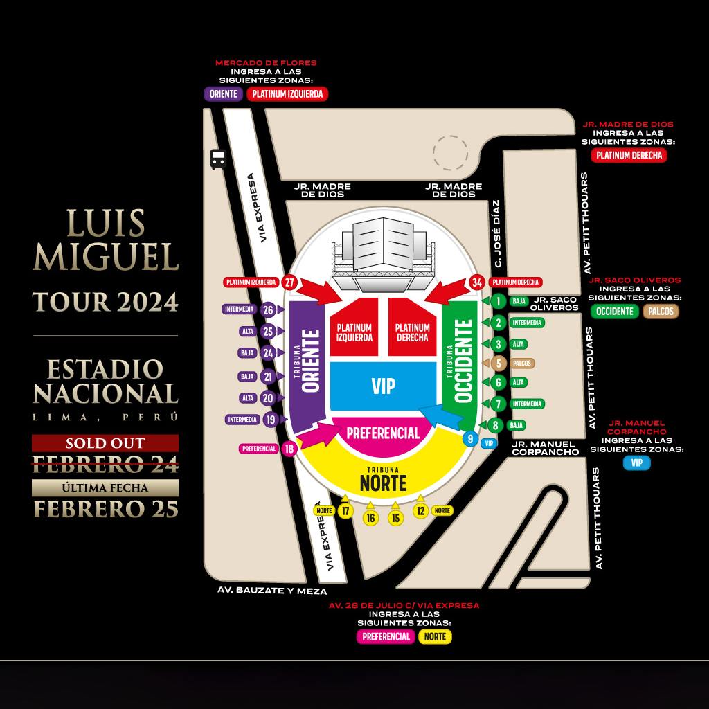 LUIS MIGUEL: PUNTOS DE ACCESO AL ESTADIO NACIONAL