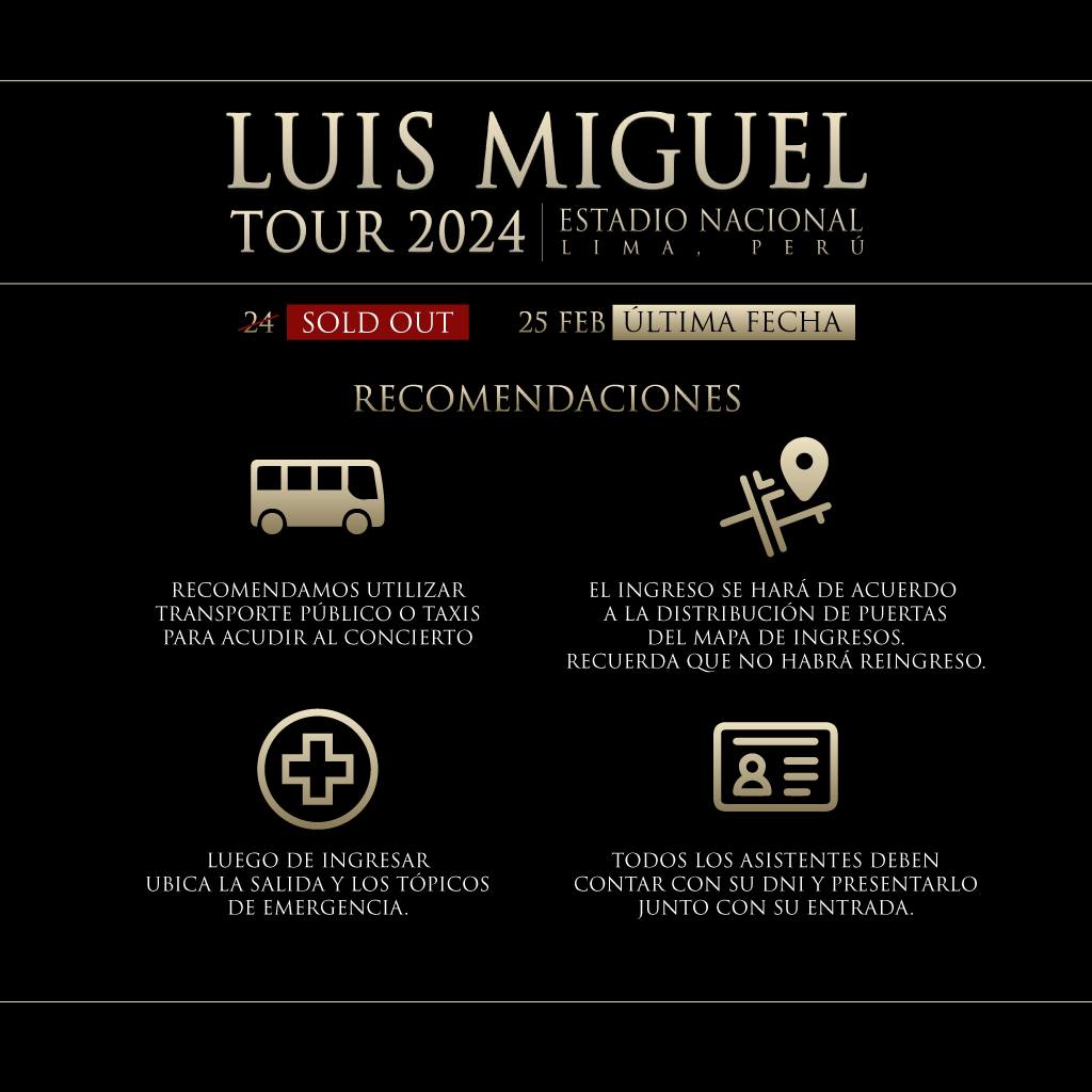 LUIS MIGUEL: HORARIOS Y ACCESOS AL ESTADIO NACIONAL