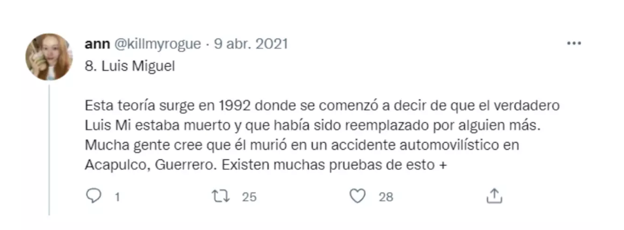 Desde el 2021, también una usuaria de Twitter hizo un hilo explicando cómo ‘El sol de México’ había muerto en 1002 y afirmando que estaría siendo reemplazado por un doble. Esto fue rebotado en diversos medios comunicaciones. El tweet ya no se encuentra en la cuenta de la usuaria.