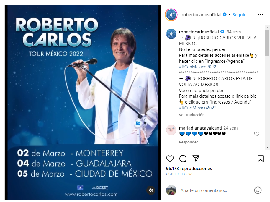 El 09 de octubre de 2021, un canal de youtube anunció la muerte del cantante brasileño Roberto Carlos. Esto fue compartido miles de veces en las redes sociales por los usuarios por días ya que el artista no hacía ninguna aclaración al respecto en sus redes sociales.