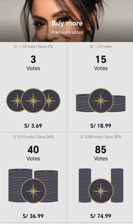 Además, para aquellos que deseen continuar expresando su apoyo de manera aún más vibrante, el certamen ha puesto a disposición paquetes de votos, los cuales se pueden pagar con tarjeta de crédito o débito.